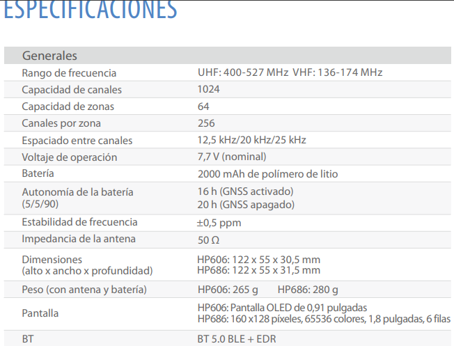 Hytera HP606 VHF 136-174MHz 1024CH Digital y Analogico 5W Radio digital DMR Tier II para Industrias con GPS Man Down Bluetooth, Pantalla OLED Precio +iva