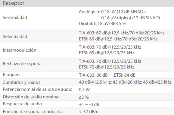 | Rango de Frecuencia | UHF:400-527MHz; VHF:136-174MHz |