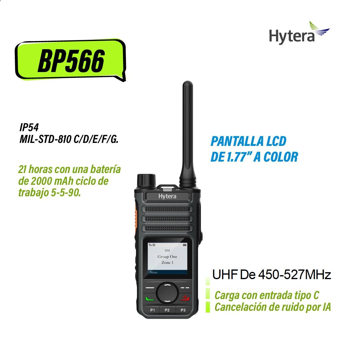 Hytera BP566 UHF2 450-520 MHz 256CH DMR Tier II 4W Radio portátil digital y analogo con pantalla amplia cobertura Precio + iva