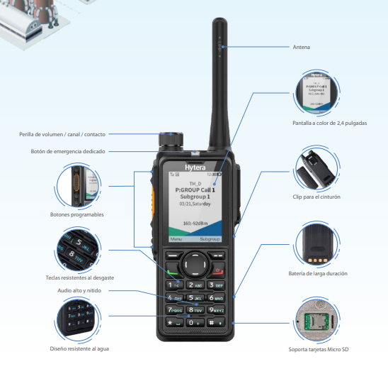 Hytera HP786 UHF3-1 350-470 MHz 1024CH DMR Tier II 4W Radio digital DMR Tier II y Analógico con Bluetooth, GPS, Man Down con pantalla LCD Precio +iva