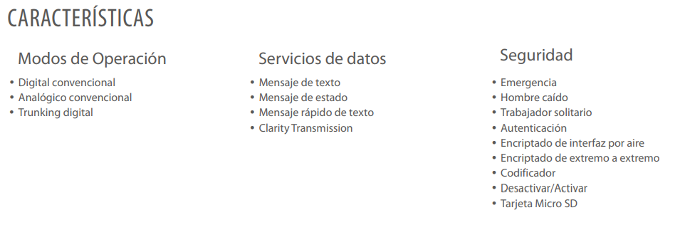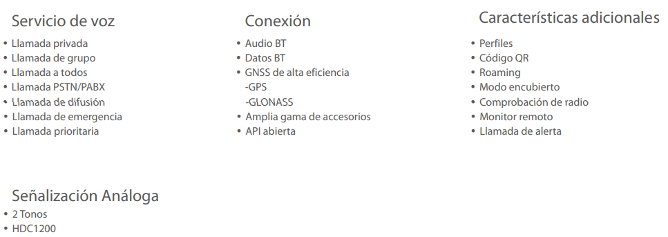 | Temperatura de Funcionamiento | -30℃~+60℃ (solo el radio) |