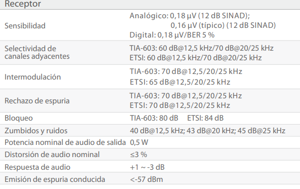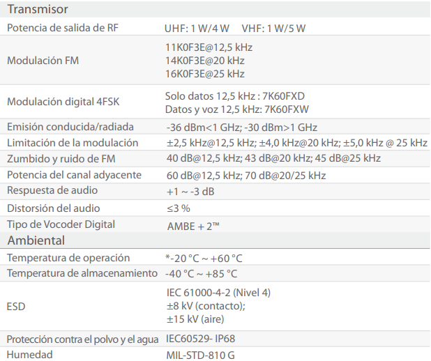 | Rango de Frecuencias | UHF:350~470MHz; VHF:136~174MHz |