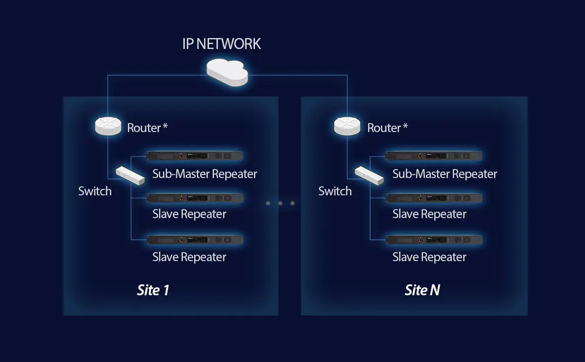 El rango de comunicación de la serie HR1066 se amplía con una sensibilidad Rx mejorada, el puerto Ethernet permite el acceso a redes IP, lo cual permite que el HR1066 se conecte a todos y en todas partes. Los usuarios pueden conectar múltiples repetidores a través de interfaces IP, cubriendo áreas más amplias.
