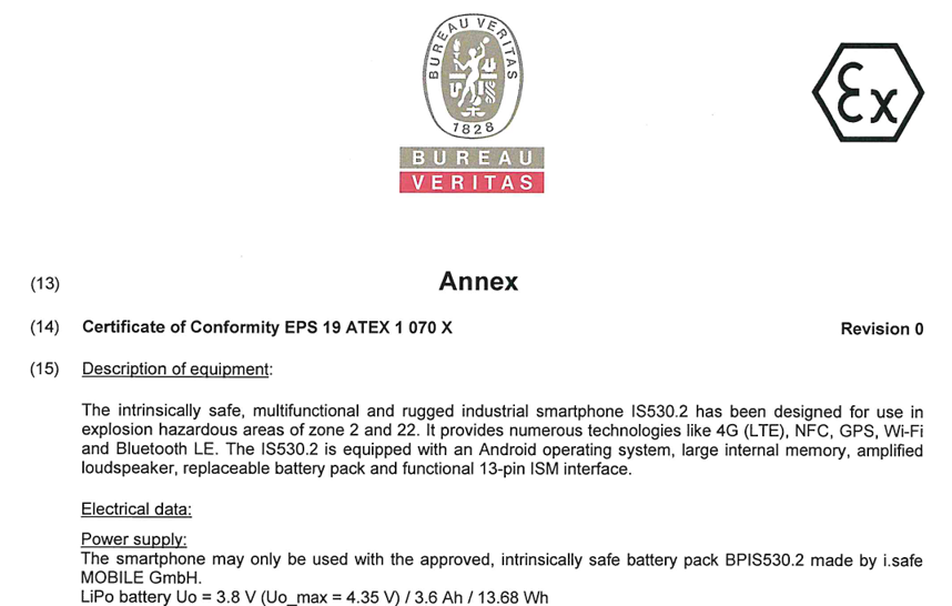i.safeMOBILE IS530.2 ATEX Zona 2/22 Smartphone intrínsecamente seguro de alto rendimiento Android™ 13 ( A pedido por importación) Precio + iva