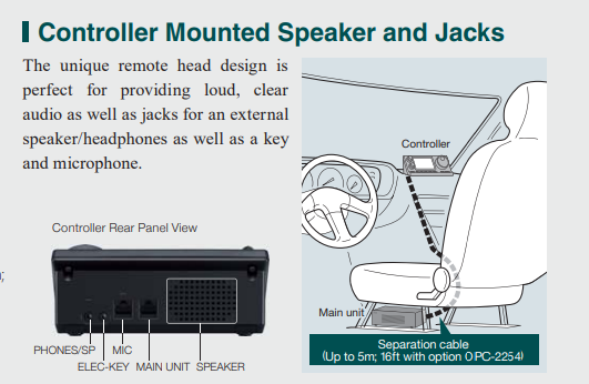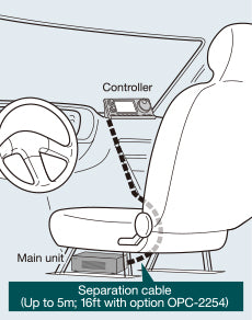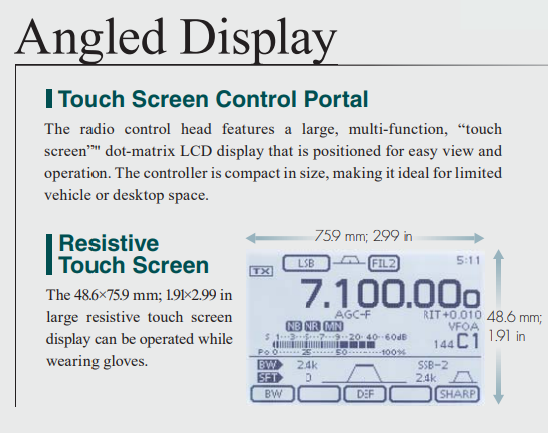 El cabezal de radiocontrol cuenta con una gran pantalla LCD multifunción de matriz de puntos "táctil" colocada para facilitar la visualización y el manejo. El controlador es de tamaño compacto, por lo que es ideal para el vehículo limitado o espacio de escritorio.