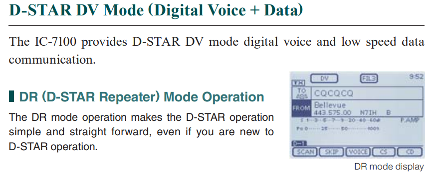 El IC-7100 proporciona voz digital en modo D-STAR DV y comunicación de datos a baja velocidad.