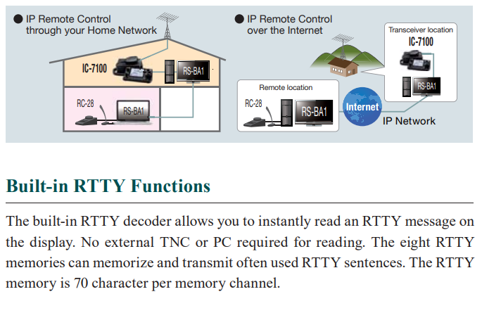 El software opcional RS-BA1 permite manejar la IC-7100 desde un PC remoto a través de Internet o de la red doméstica local.