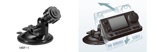 La combinación de la base de montaje con ventosa MBF-1 opcional y el soporte del controlador MBA-1 permite ajustar fácilmente la inclinación y el giro para un funcionamiento móvil. La ventosa de gran tamaño puede montarse en salpicaderos u otras superficies planas y puede retirarse fácilmente.