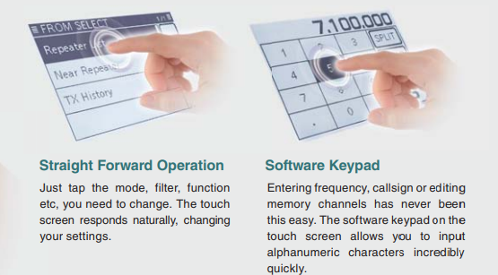 Introducir frecuencias, indicativos o editar canales de memoria nunca había sido tan fácil. El teclado de software de la pantalla táctil permite introducir caracteres alfanuméricos con increíble rapidez.