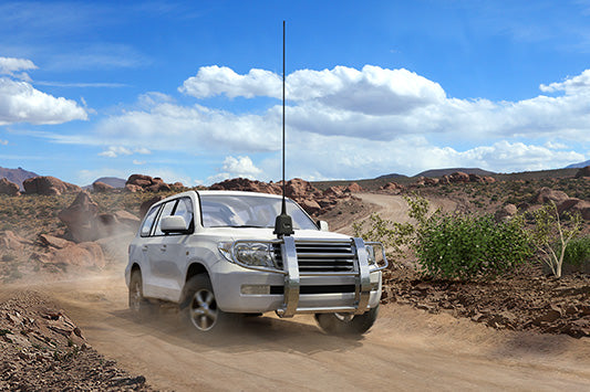 La antena de sintonización automática con montaje en vehículo opcional proporciona una sintonización de alta velocidad impulsada por relé de 2,5 a 30 MHz. Su protección contra el polvo IP55 y su resistencia a los chorros de agua garantizan un funcionamiento confiable en condiciones climáticas adversas.