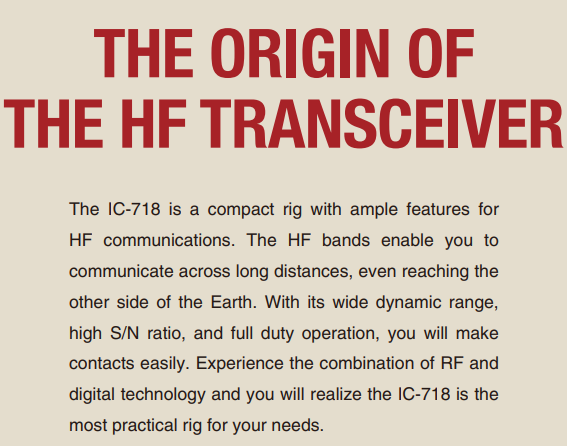 ICOM IC-718 ASP (Digital Signal Processing) Radio multi banda HF El origen del Radio HF ahora mejorado aún más (Importación a pedido) Precio+ iva