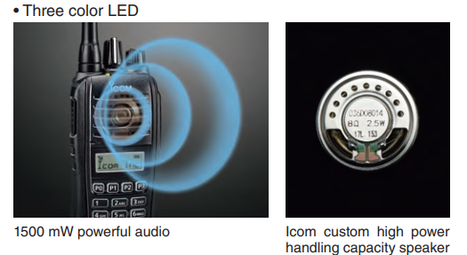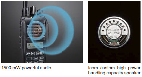 - El altavoz personalizado de Icom ofrece una salida de audio más potente de 1500 mW