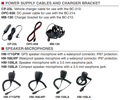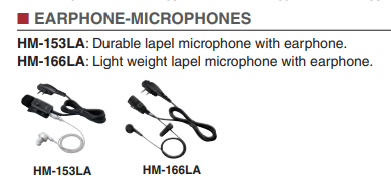 HM-159LA: Speaker microphone with a 2.5 mm earphone jack.