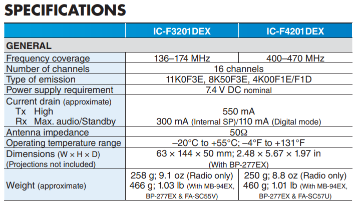 ICOM IC-F3201DEX VHF 136-174MHz 16CH Digital IDAS™ Analogico Intrínseco 1W Radio portatil ATEX digital (A pedido por importación 6 semanas) Precio + iva