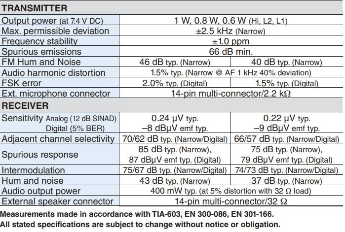 - 2 tonos, 5 tonos, CTCSS y DTCS incorporados para el modo analógico