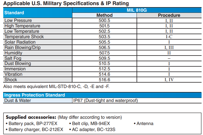 Icom fabrica productos robustos que han sido probados y han superado los siguientes requisitos MIL-STD y las estrictas normas medioambientales.