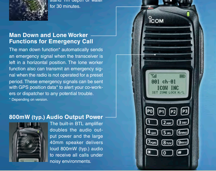 Icom fabrica productos resistentes que han sido probados y han superado los siguientes requisitos MIL-STD y estrictos estándares ambientales.