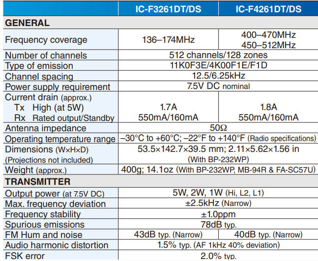 ICOM IC-F4261DS UHF 450-512MHz 512CH Analogico y Digital NXDN 5W Radio digital con GPS, IP67, con pantalla y teclado standard (A pedido 4-6 semanas) Precio + iva