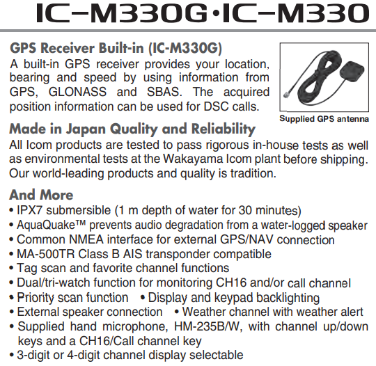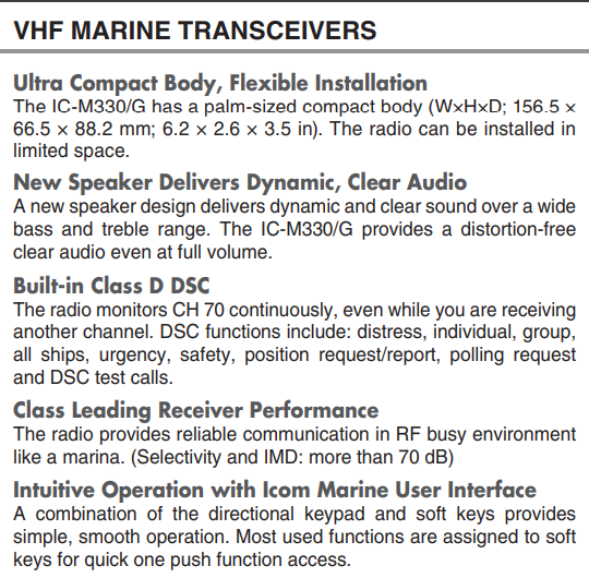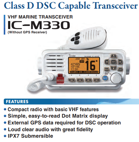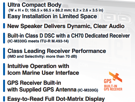 ICOM IC-M330G (Con receptor GPS) Radio Móvil Marina de montaje fijo VHF IPX7, GPS DSC de clase D, NOAA Alert (Importación a pedido 5 semanas) Precio +iva