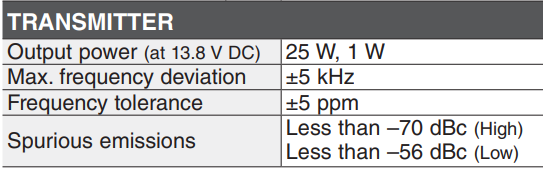 Potencia de salida (a 13,8 V CC) | 25 W, 1 W | |