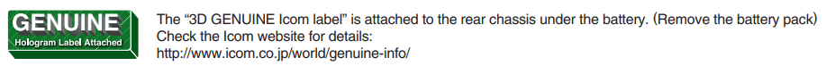 Icom, Icom Inc. and Icom logo are registered trademarks of Icom Incorporated (Japan) in Japan, the United States, the United Kingdom, Germany, France, Spain, Russia, Australia, New Zealand and/or other countries. AQUAQUAKE is a trademark of Icom Incorporated. QR Code is registered trademark of DENSO WAVE INCORPORATED in Japan and in other countries. All other products or brands are registered trademarks or trademarks of their respective holders.