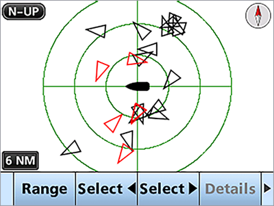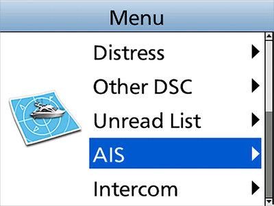 Gracias a su receptor AIS integrado *1 o a la sentencia NMEA externa *2 , el IC-M510 puede mostrar información del tráfico marítimo AIS en tiempo real en la pantalla. Puede realizar llamadas DSC individuales directamente a objetivos AIS seleccionados desde la pantalla AIS.