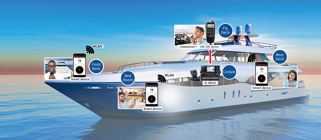 El IC-M510 EVO es un transceptor marino VHF multifuncional y elegante que también incorpora una innovadora tecnología de operación con smartphones. Su DSC clase D integrado proporciona una comunicación marítima esencial, lo que contribuye a la seguridad en el agua. La integración con la conectividad NMEA 2000™ integrada y las funciones de megáfono bidireccional/megáfono RX mejoran aún más su experiencia en el mar. El sencillo control remoto a través de un dispositivo inteligente permite una experiencia de comunicación a bordo sin precedentes. Además, el producto cuenta con una pantalla a color, funciones de navegación y un diseño elegante que ganó un premio de diseño iF. Puede utilizarse en embarcaciones de recreo, barcos de pesca, vela, así como en rescate y seguridad pública.