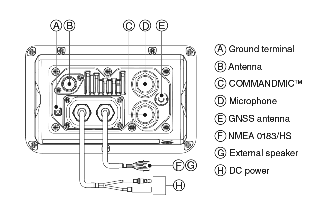 La red NMEA 2000™ proporciona comunicación de datos plug-and-play para interconectarse con otros equipos marinos, como una MFD (pantalla multifunción). La radio puede enviar posición GNSS (GPS), información AIS*, llamada DSC y datos de canal de radio a otros equipos.