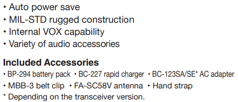 - 21 horas de batería de larga duración con BP-294 (TX: RX: Standby=5:5:90.)