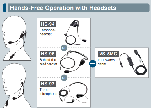 HS-94 Earphone headset + VS-5MC PTT switch cable