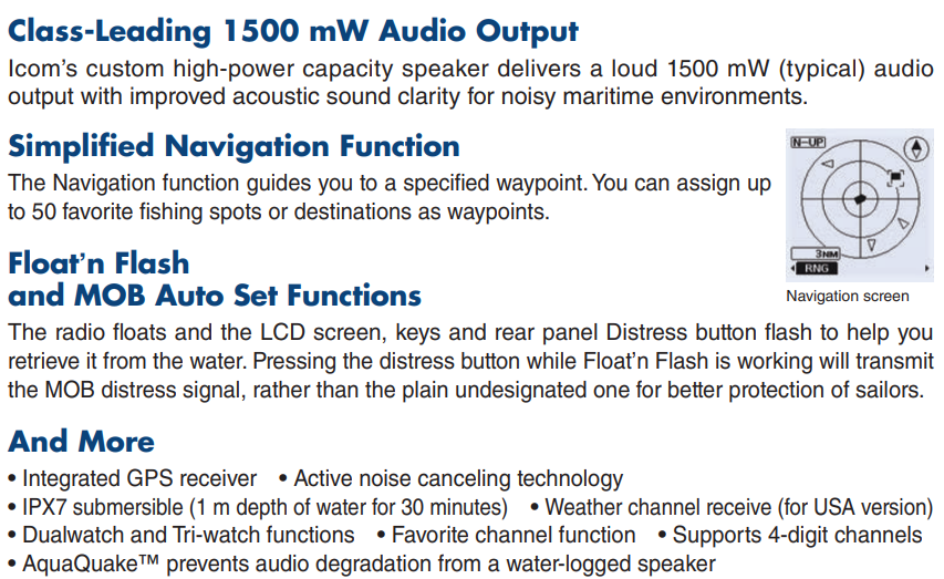 ICOM IC-M94D 6W Radio portátil marino VHF DSC, AIS, Float´n Flash, AQUAQUAKE, 10 Hours, MOB, IPX7, NOAA Alert (Importación a pedido 5 semanas) Precio +iva