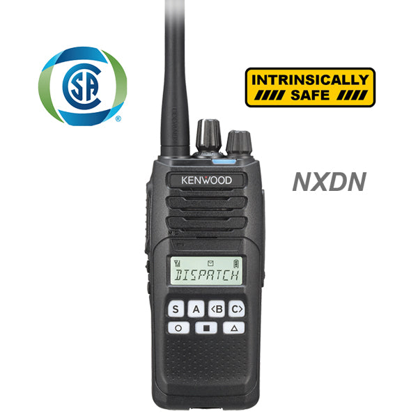 Radio portátil Antiexplosivo digital NXDN y analógico. Con pantalla. Rango 136-174 MHz, 5 Watts, 260 canales / 128 zonas, roaming, encriptación, incluye antena, batería KNB-82LCM de 1900mAh (Intrinsically Safe), cargador de mesa y clip de cinturón.