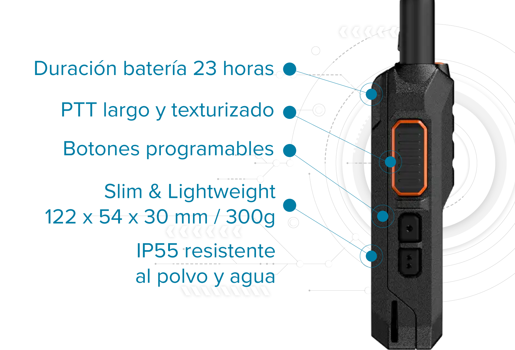 Un dispositivo de alto rendimiento, con tiempo de conversación prolongado y compatible con DMR
