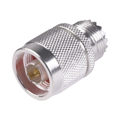 RFN-1035-1 Adaptador en Línea, de Conector N Macho a UHF Hembra (SO-239), Plata/ Oro/ Teflón.