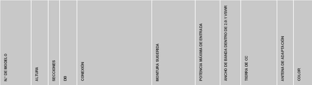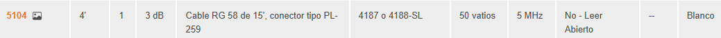 - Utiliza cable RG 58 de 15', tipo de conector PL-259, a menos que se indique lo contrario a continuación*