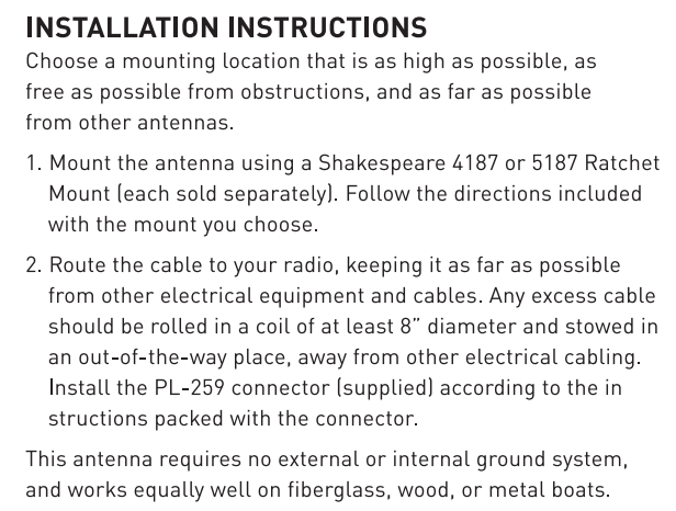 Shakespeare 5104 Classic antena banda marina VHF 132-174 3dB sin montaje incluye conector y cable.