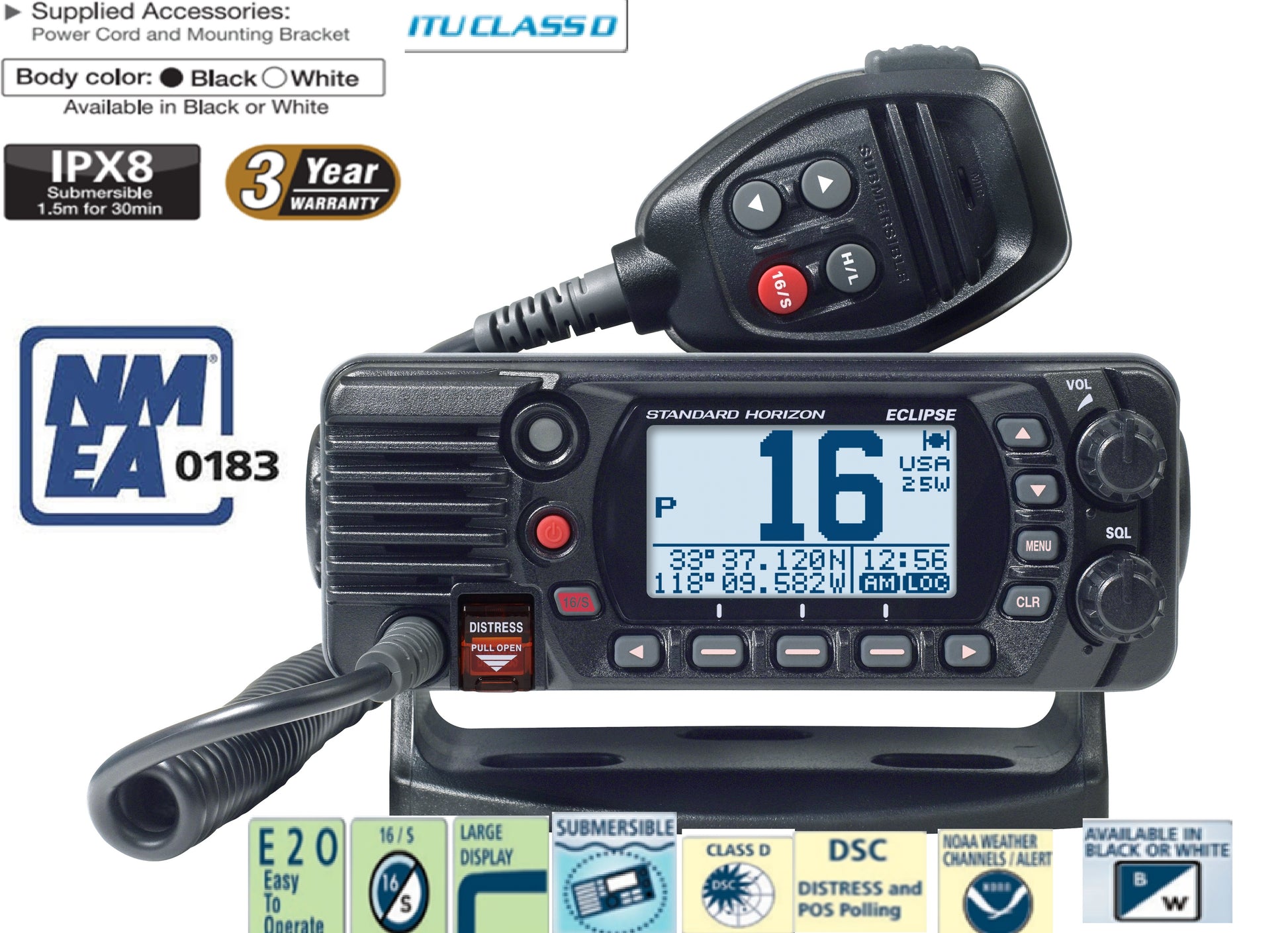 Standard Horizon GX-1410 Black Móvil Marino, Eclipse, Fixed Mount, VHF, 25W, NMEA0183, IPX8, E20, Canal 16, Clase D DSC, NOAA Precio + iva