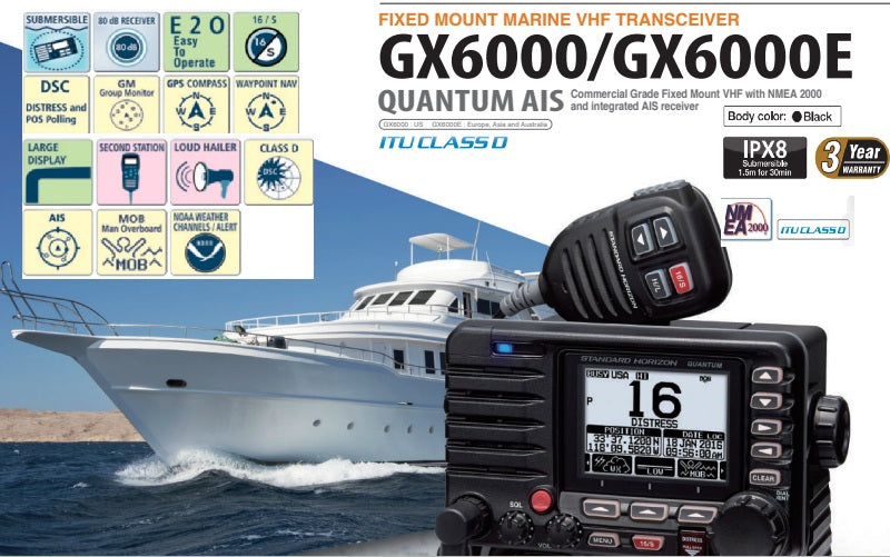 ¡El referente en comunicaciones marinas! El VHF fijo Quantum GX6000 de grado comercial con NMEA2000 y receptor AIS integrado.