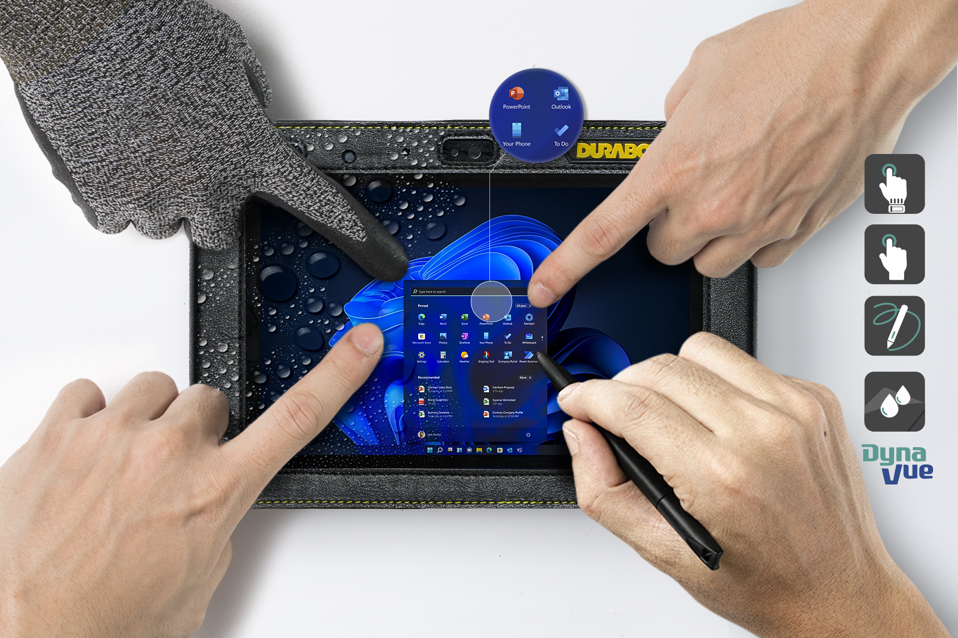 El R8-EX cuenta con una pantalla LCD de 8" (1280 x 800) con tecnología patentada DynaVue®, que proporciona hasta 800 nits para una visualización nítida incluso con luz solar directa. Es compatible con los modos horizontal y vertical, lo que permite a los usuarios elegir su orientación preferida. El R8-EX también ofrece cuatro modos táctiles avanzados: Guante, Lápiz óptico, Agua y Dedo, con un digitalizador opcional. Estas características optimizan su uso tanto en interiores como en exteriores, garantizando versatilidad y facilidad de uso en diversos entornos.
