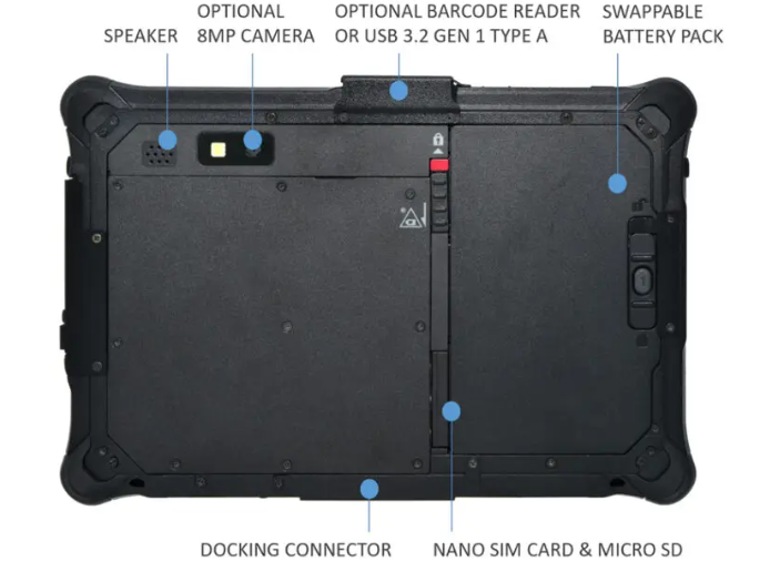 Con la batería de larga duración en mente, la R8-EX funciona durante 8,5 horas con su batería principal reemplazable, lo que garantiza una productividad continua. Para un uso prolongado, una batería opcional de alta capacidad proporciona hasta 17 horas de funcionamiento, lo que permite a los profesionales en entornos peligrosos usar la tableta durante varios turnos sin necesidad de recargarla.