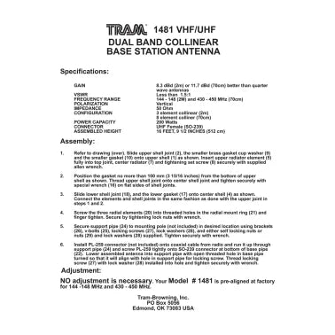 Tram® 1481 Antena de 3 secciones, 200 vatios, conector UHF SO-239 de 50 ohmios,base colineal fibra de vidrio doble banda VHF 144-148/ UHF450-450 MHz Precio + iva