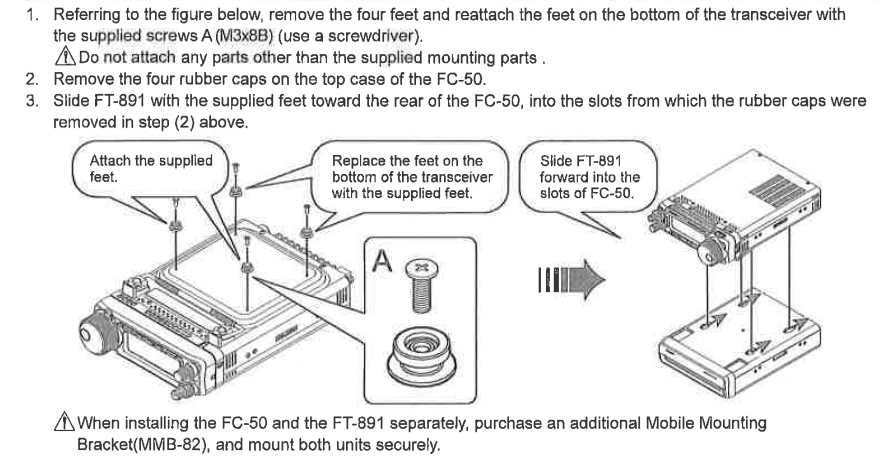 Notas: El sintonizador tiene muescas en la carcasa para soportar los transceptores FT-891.