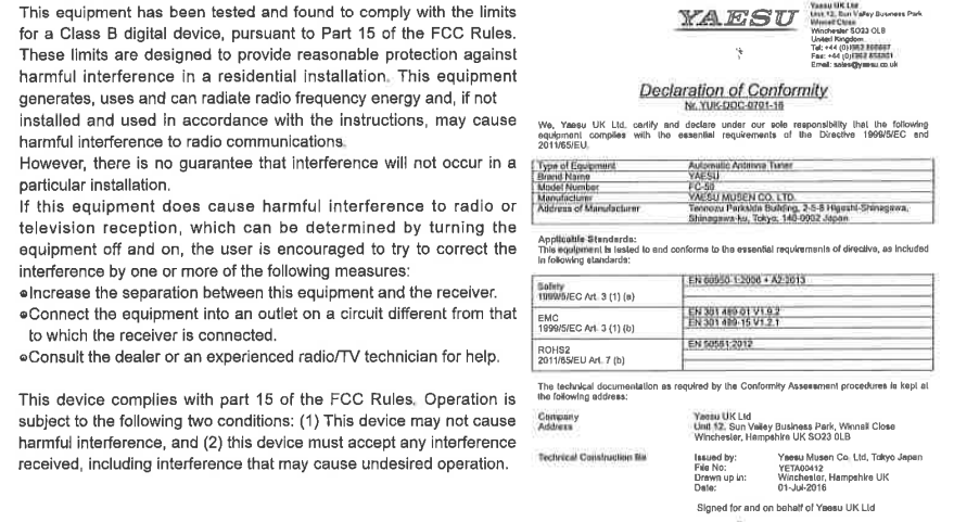 Yaesu FC-50 Sintonizador de antena externo automático para FT891 Precio + iva