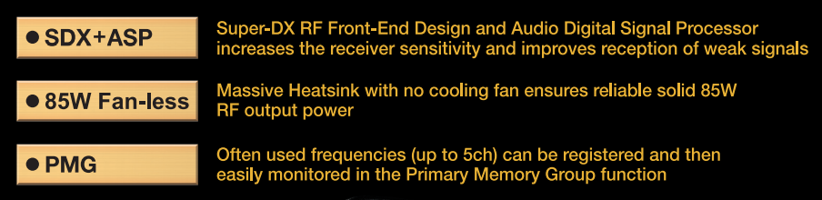 - Función Super-DX para mejora de sensibilidad del receptor y calidad de audio