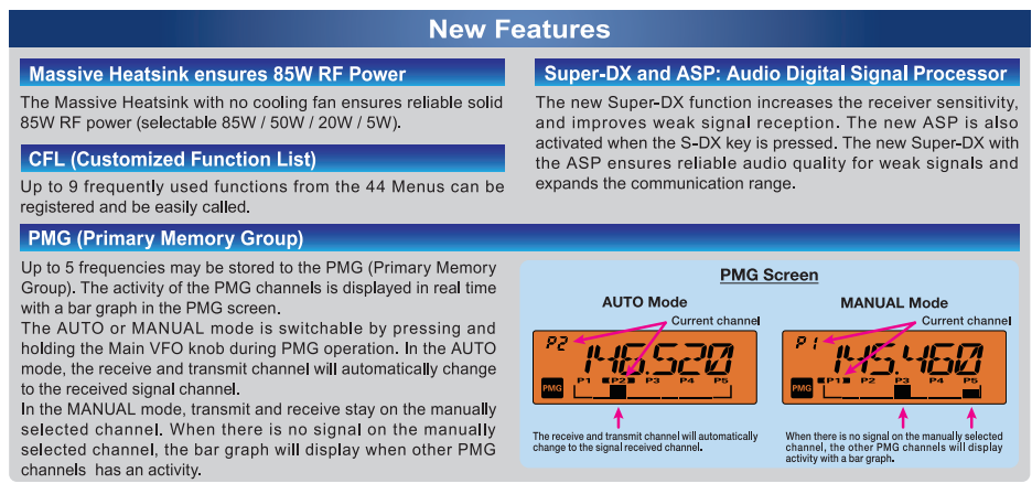 Se pueden asignar hasta 5 frecuencias VFO o de canal de memoria al PMG (Grupo de memoria primaria).