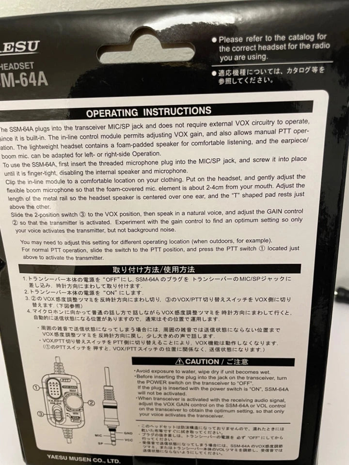 Yaesu SSM-64A Auricular tipo cintillo liviano VOX para Yaesu VX-6R para Standard Horizon HX-890 HX-40 HX-210 HX-320 HX-380 HX-400 Precio + iva